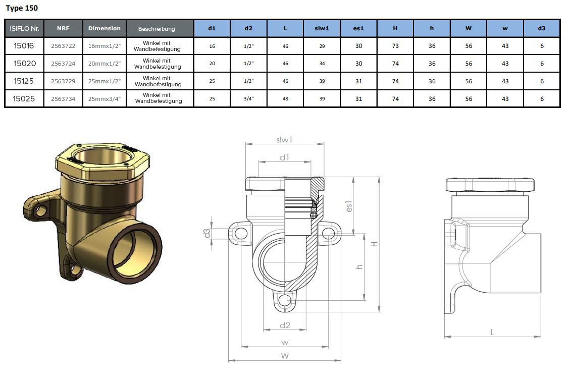 Typ 150 - Winkelanschlussverschraubung mit Wandbefestigung